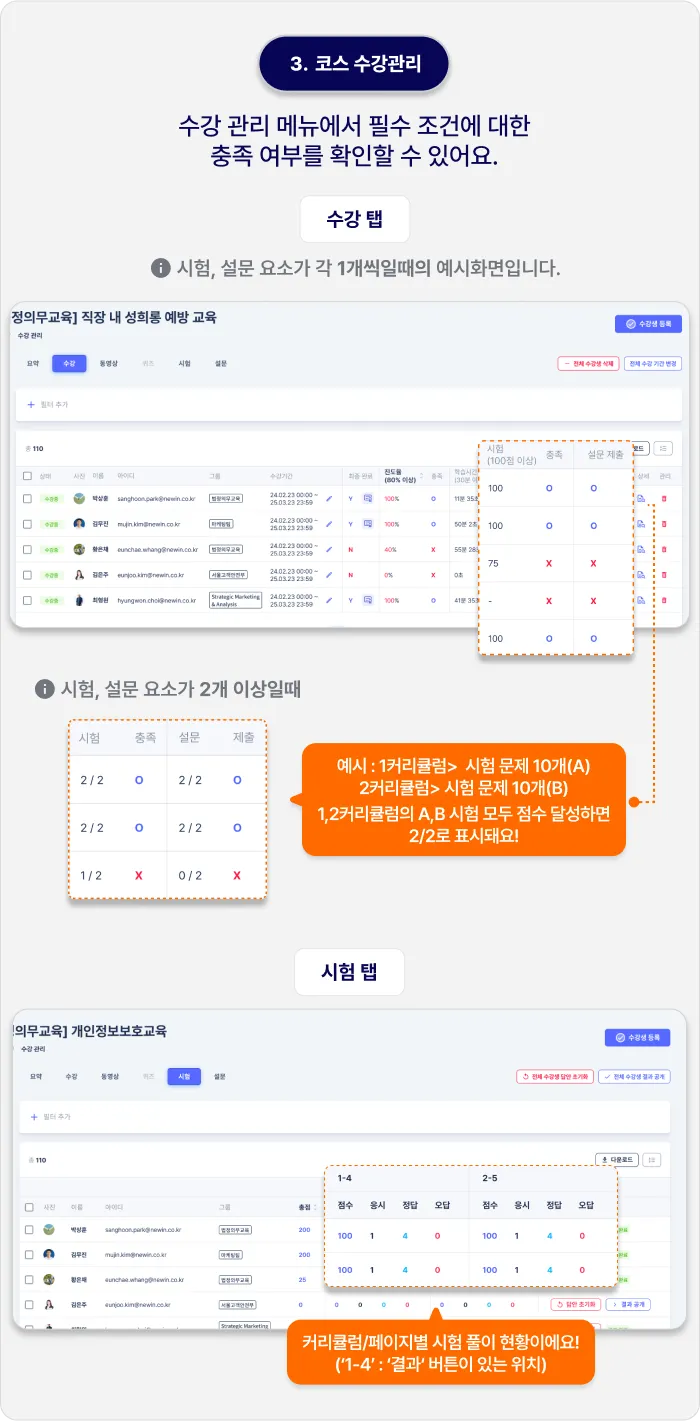 코스 수강 관리 ▸ 수강생의 필수 학습 완료 현황 확인