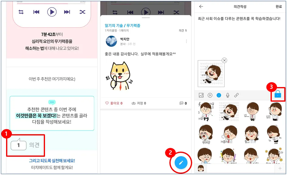 의견/게시글 데이터에서 학습자의 소속 부서를 쉽게 파악할 수 있습니다.