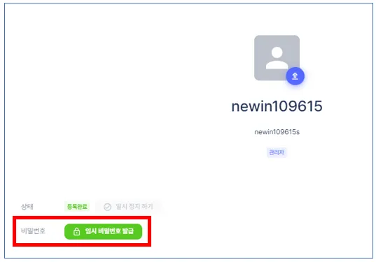 관리자에게 임시 비밀번호를 발급할 수 있습니다.