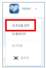 관리자 계정으로 로그인→[내 프로필 관리]에서 관리자 정보를 변경할 수 있습니다.