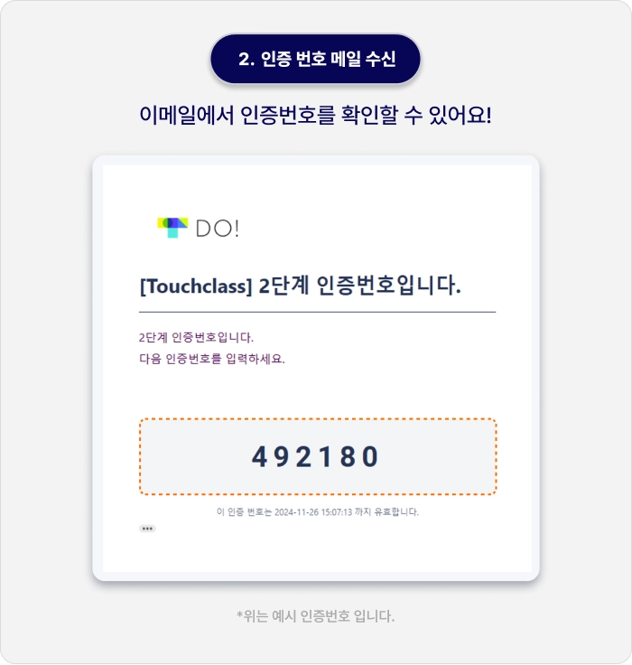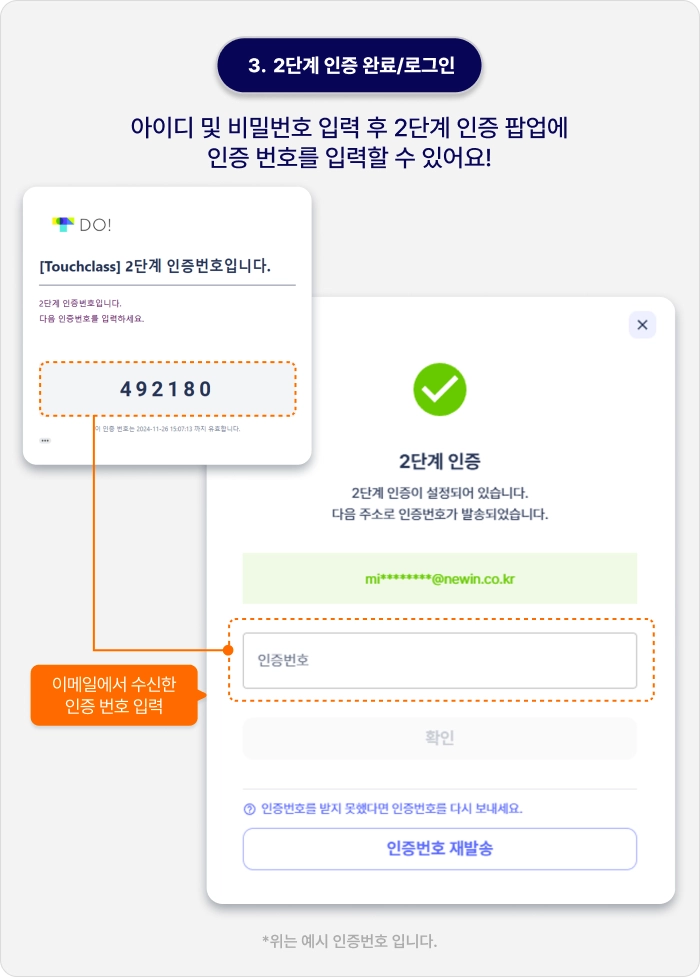 관리자/부관리자 ▸ 등록된 이메일로 인증 메일 수신, 입력