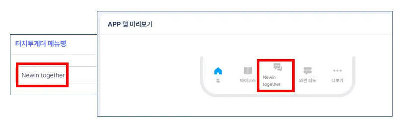 ⑩ 터치투게더 메뉴명 : 앱 하단에 표시되는 터치투게더의 이름을 변경할 수 있습니다.