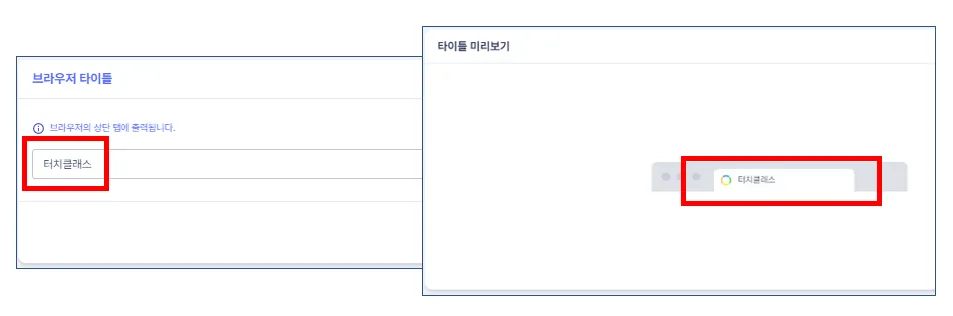 ② 브라우저 타이틀 : 웹 브라우저 상단 탭에 출력할 사이트 제목입니다.
