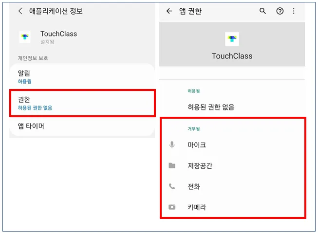 ② [Touchclass에서 기기의 사진 및 미디어에 액세스하도록 허용하시겠습니까?]▸[허용]