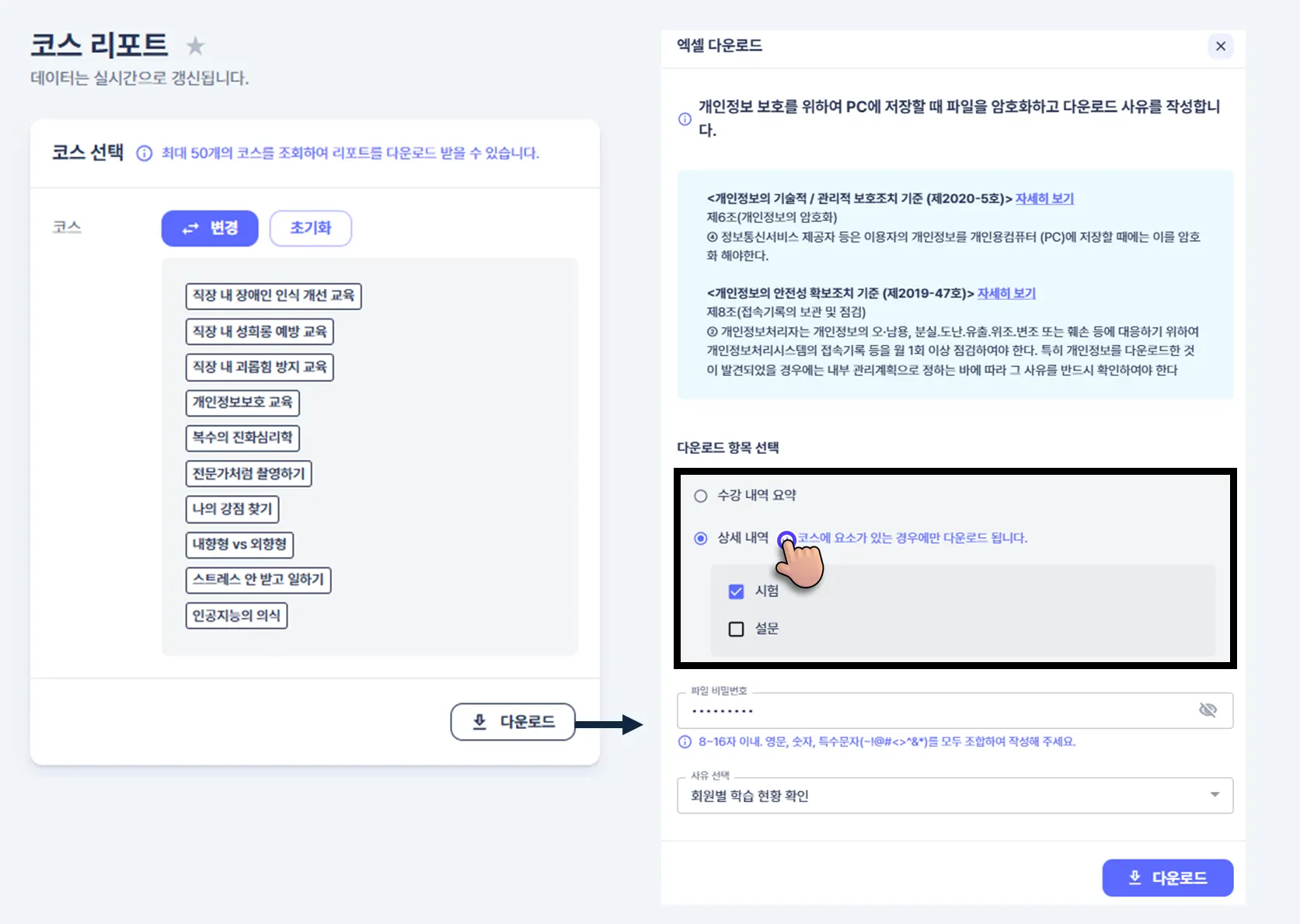 ② 상세 내역 ▸ 여러 코스의 시험, 설문 결과 조회하기