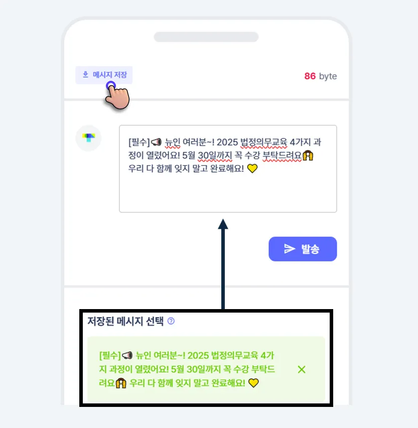 ▸ 자주 사용하는 메시지를 저장하면, 다음 푸시 메시지를 발송할 때 쉽게 발송할 수 있습니다.