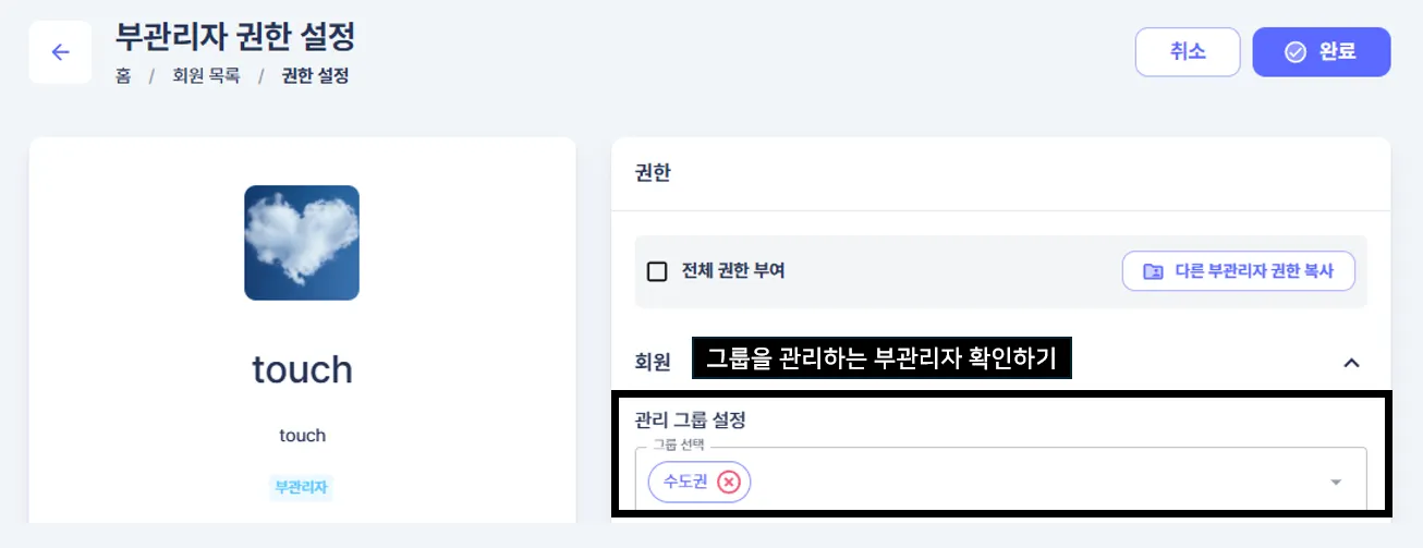 ① 그룹을 관리하는 부관리자 확인하기(별도로 현황 공유)