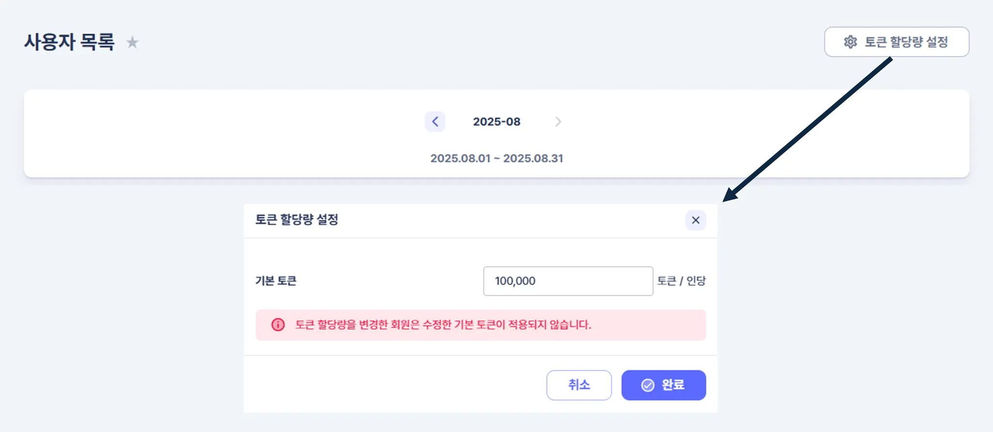 사용자의 기본 토큰 할당량 설정 : 전체 회원에게 기본 토큰 할당