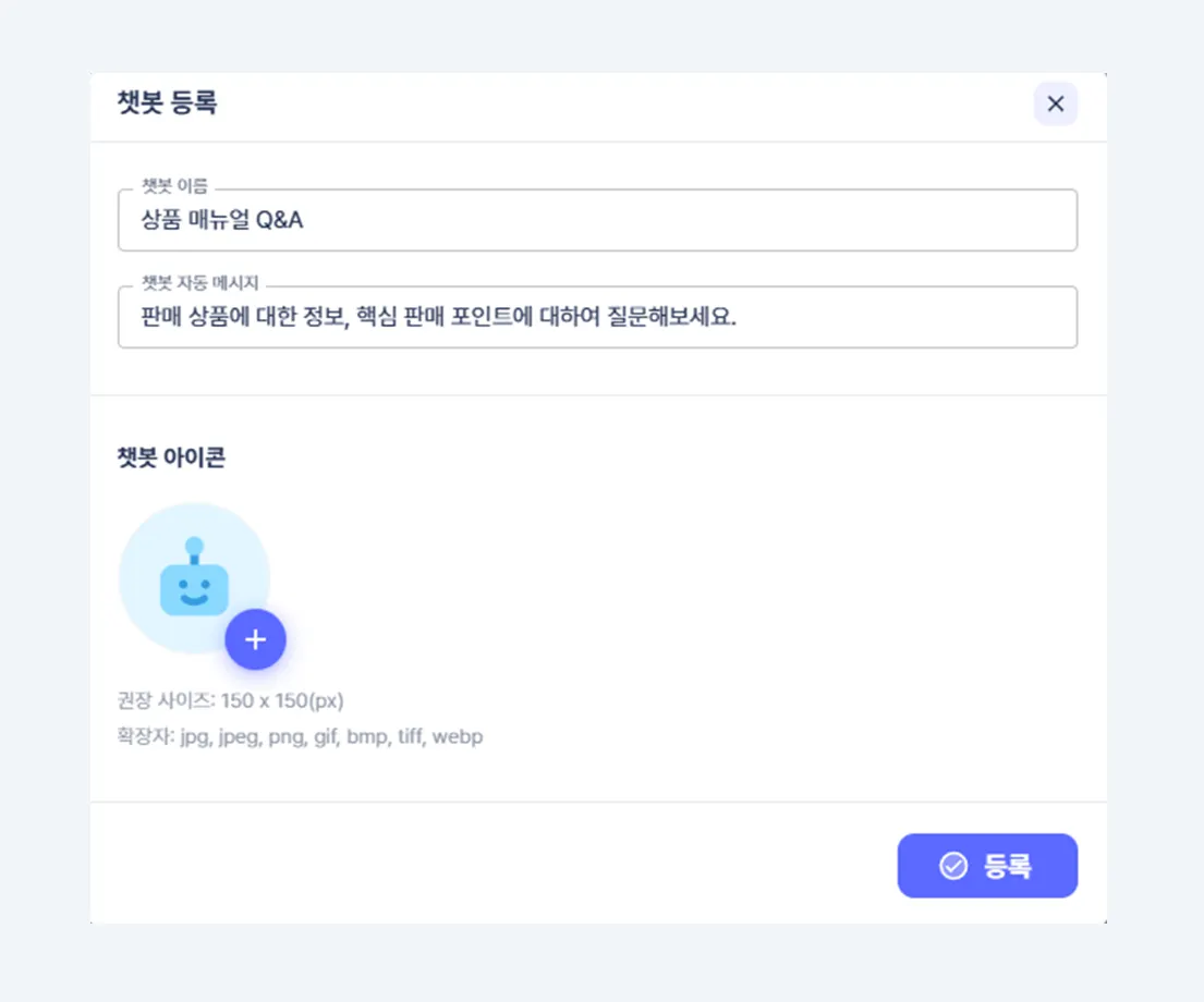AI 챗봇▸챗봇 목록▸등록