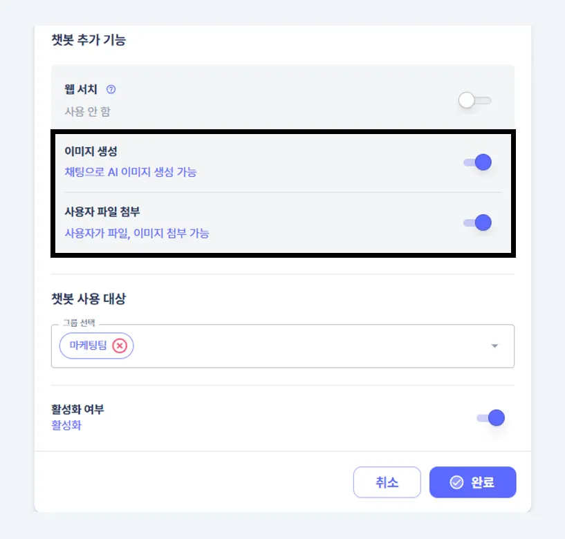 ④ 챗봇 추가 기능 설정하기