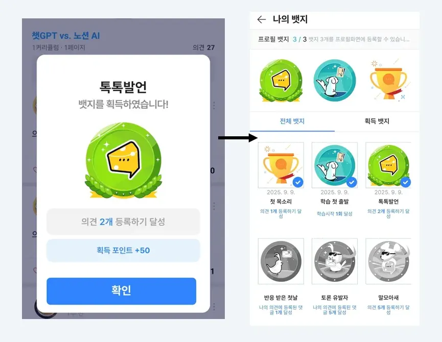 학습 활동을 통해 포인트와 뱃지, 액자를 획득할 수 있게 운영해보세요.