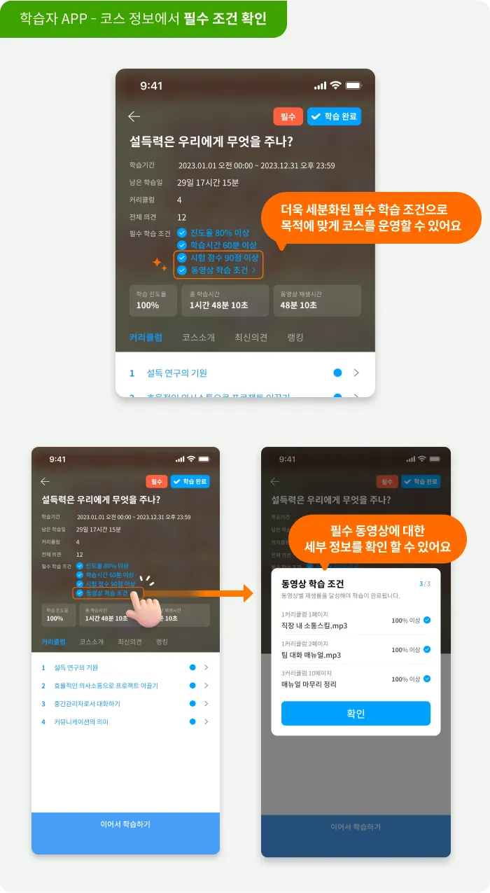 더욱 세분화된 학습 조건을 적용하여 필수 코스를 운영해보세요