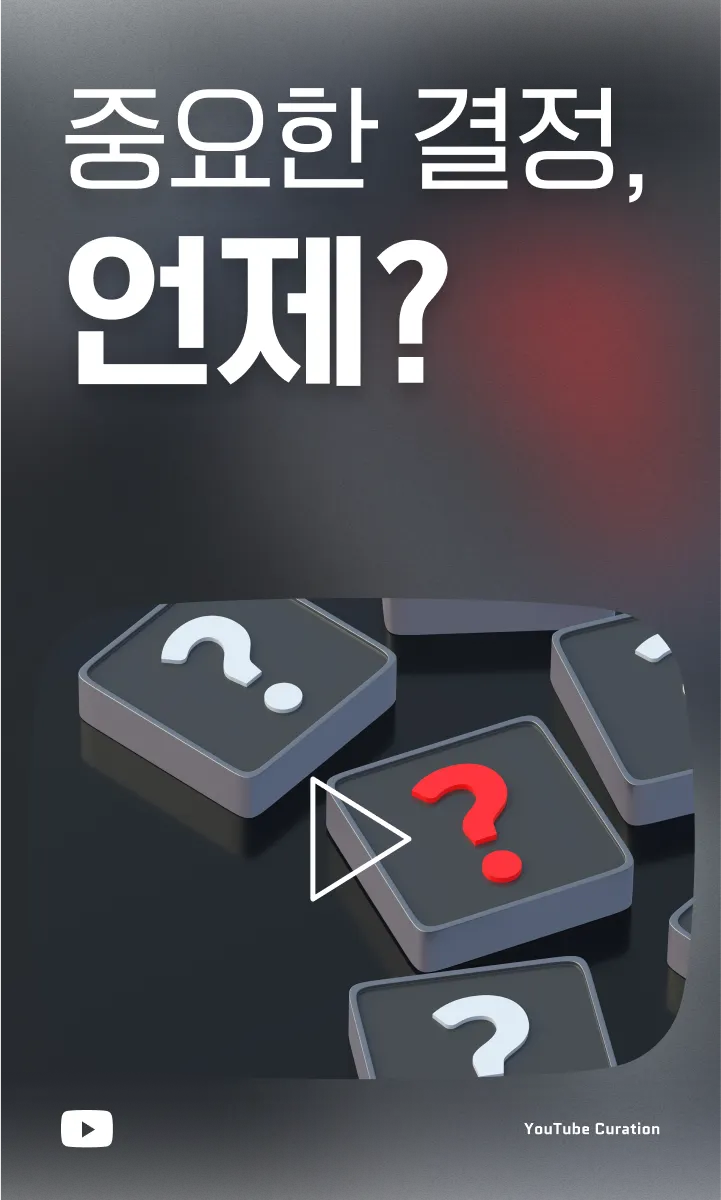 예시 | [유튜브 추천] 배고프거나 화가 나거나 외롭거나 피곤할 때, 판단력이 흐려질 수 있어요. 중요한 결정은 배부르고 등 따수운 상태에서 내려야 해요. 왜 그런지 진짜 과학적인 이유가 있거든요! 영상으로 함께 보실까요? |