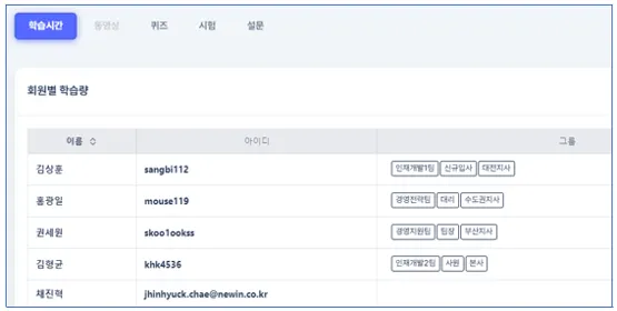 또한 회원별/그룹별 학습량을 조회하고, 엑셀 파일 다운로드 받을 수 있습니다.