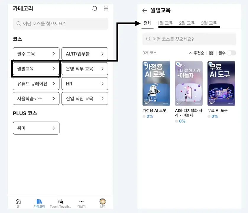 코스를 개설할 때 , 분류를 등록하고 순서를 조정해 학습자가 쉽게 찾을 수 있도록 해보세요