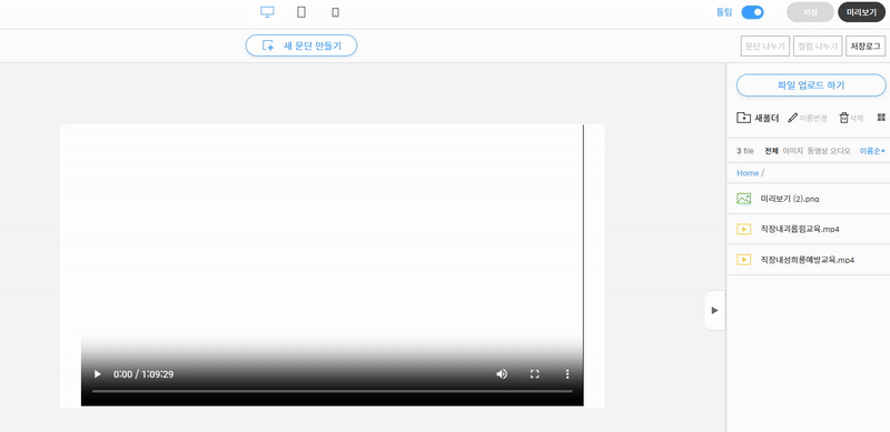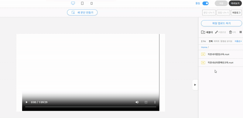 콘텐츠 에디터에서 우측 위에 [파일 업로드 하기]를 클릭 후 교체할 파일을 업로드 합니다.
