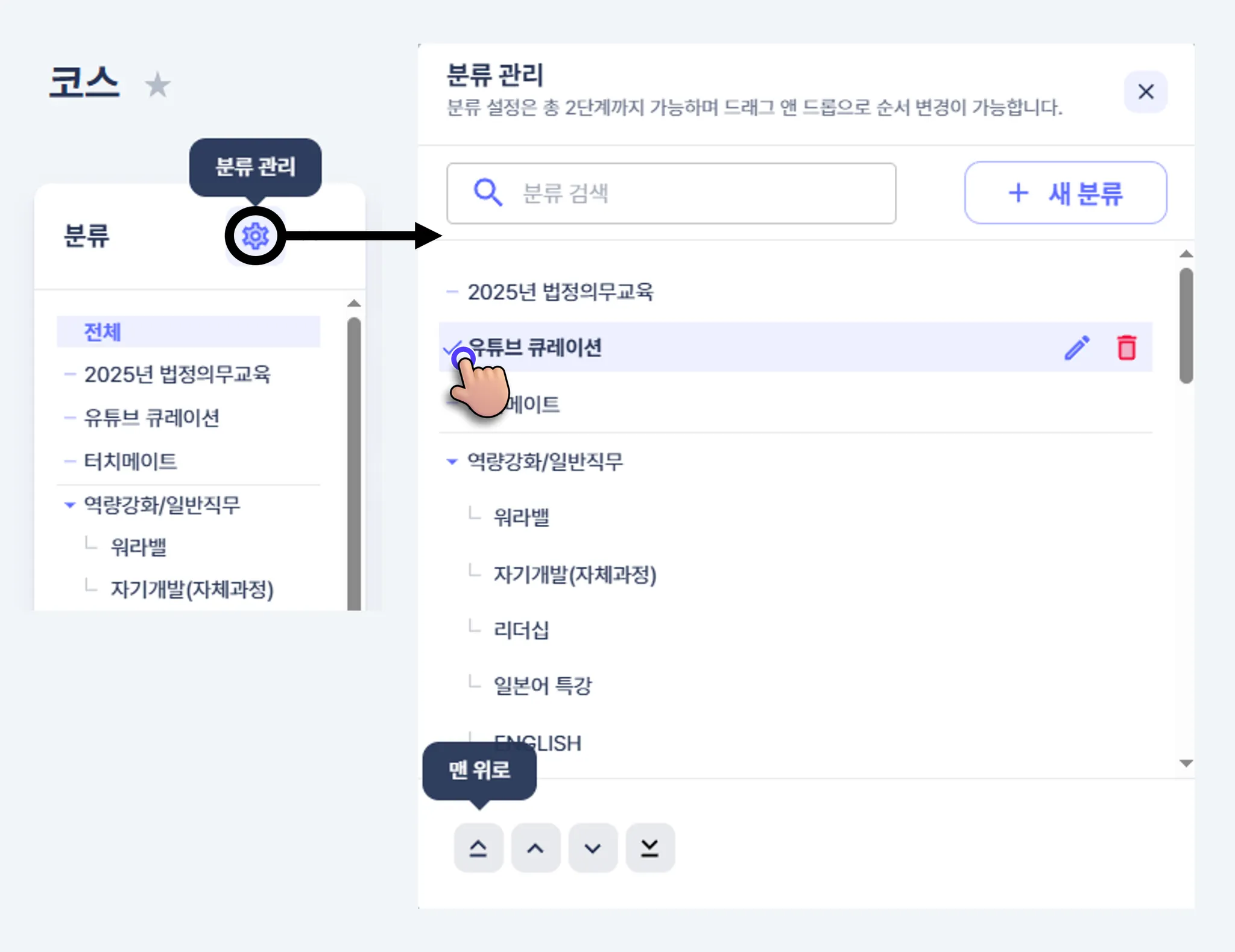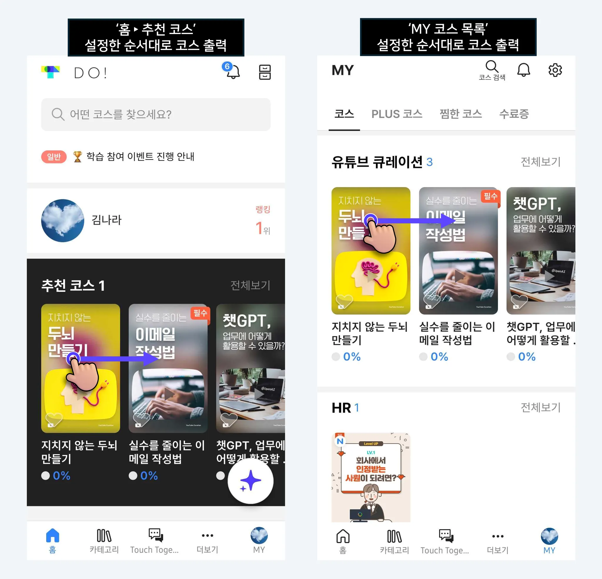 ▸‘코스 분류’의 순서를 변경하면, 학습자 ’MY 코스 목록’에 변경한 코스 분류의 순서대로 나옵니다.