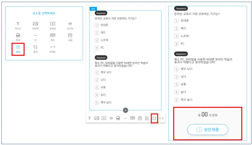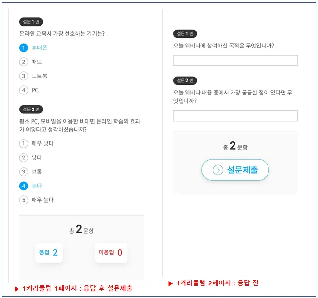 (예) 1커리큘럼→ 1페이지, 2페이지에 설문 문제를 삽입