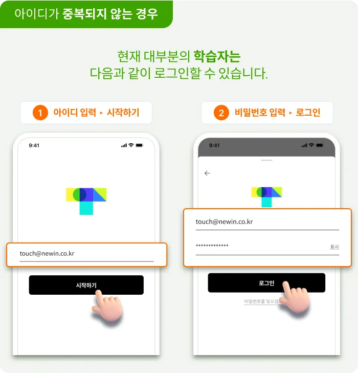 학습자 APP에서 로그인하는 방식이 변경됩니다.