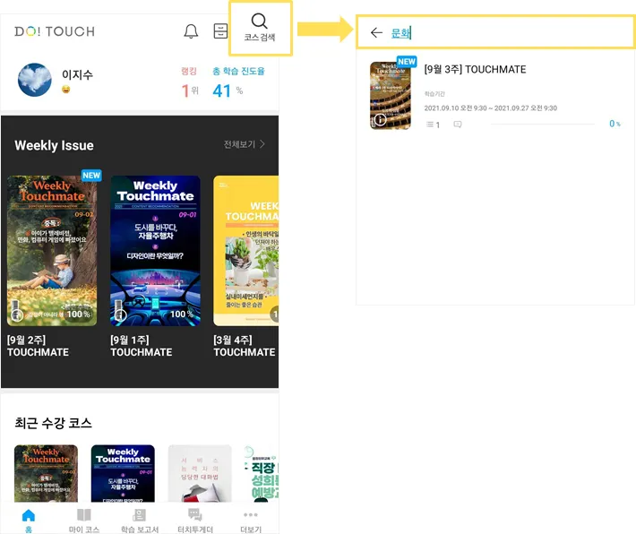 ② 코스를 검색하여 학습을 시작합니다.