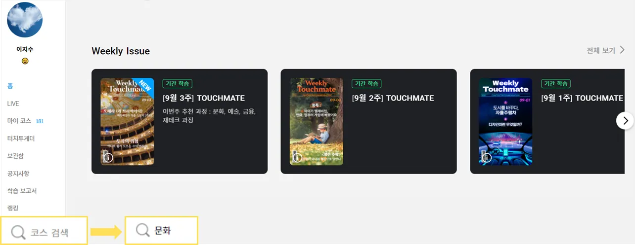 ② 코스 소개 : 학습자가 코스를 찾기 위해 검색할 단어를 입력합니다.