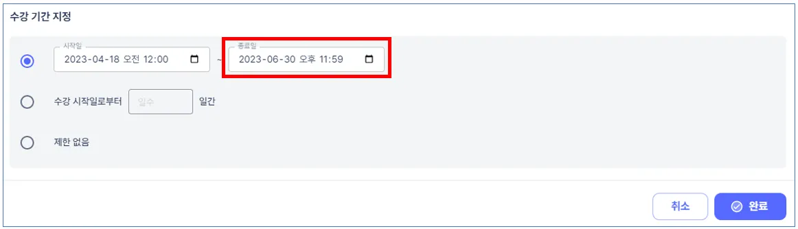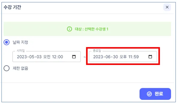 수강 종료 날짜를 변경합니다.
