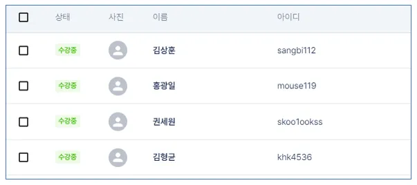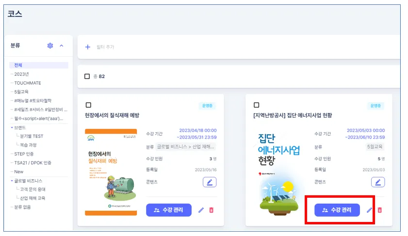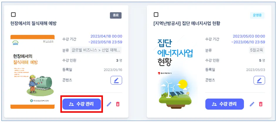 코스 목록 → 수강 관리('운영중'코스인 경우)