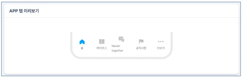 App 하단의 '탭 메뉴'를 목적에 맞게 구성할 수 있습니다.