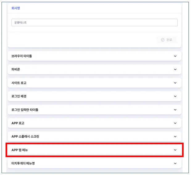 메뉴 위치:설정-->커스텀-->APP탭 매뉴
