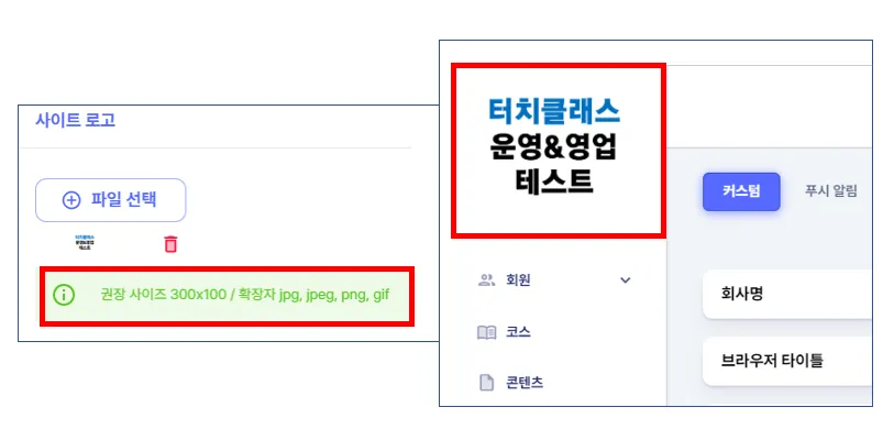 로그인 화면, 사이트 좌측 메뉴 상단, 시스템 메일 상단에 출력