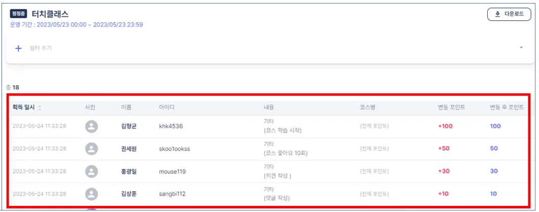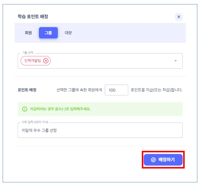 특정 학습자들을 대상으로 수동으로 포인트를 배정할 수 있습니다.