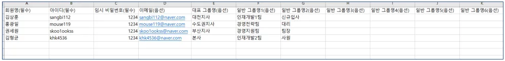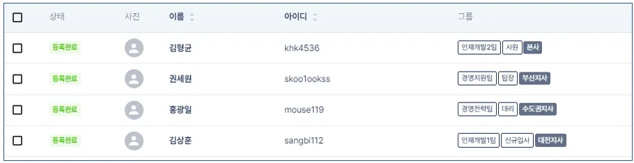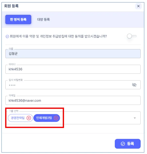 회원 목록→등록→그룹 선택을 선택하고 그룹을 추가합니다.